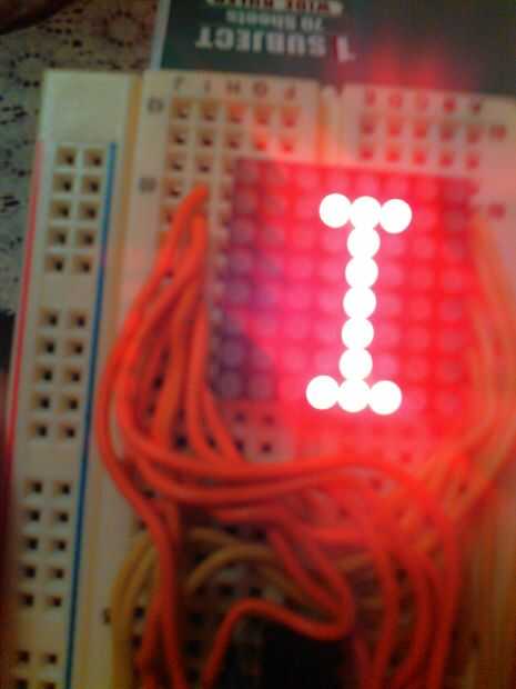 Carga el código (alfabeto americano: A-Z), se puede observar que existe un código más grande. Es decir, hay más características agregadas a su código. Sin embargo, cada figura puede ser manipulado por modificar el retardo de myMatrix.clear. En este punto, manipular y cambiar las letras o combinar números, letras y símbolos para que usted puede hacer lo que quiera. Tome el código si es necesario para verificar los resultados de la siguiente página web: http://pastebin.com/nTN8Dy5C