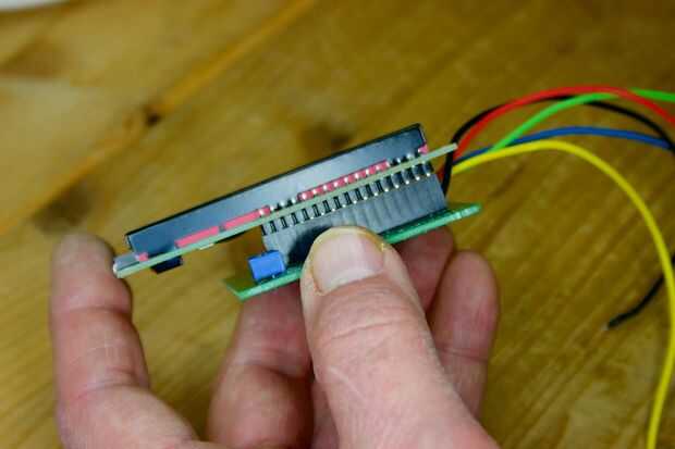 Ahora que todos los componentes se sueldan en la placa de la pantalla LCD se puede conectar en la matriz de tablero pin. Las imágenes muestran lo que debe esperar, manteniendo en sus manos el producto final.