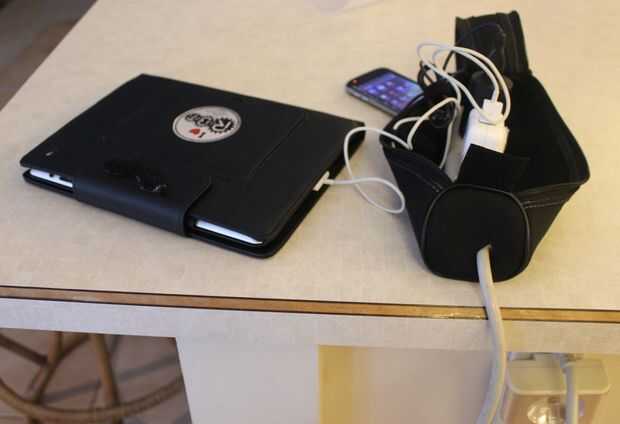 Por lo que he estado en esta patada por un tiempo ahora encontrar una estación de carga portable agradable que consolidaría en un pequeño espacio, mi varios y diversos cargadores para mi laptop, teléfono celular, batería de iPad y cámara. Subió con un rodillo hasta estación de carga, que me gusta, pero también me gusta este sistema poco dulce y simple - básicamente sólo un kit de aseo de tela con un pequeño powerstrip metido en él, con un agujero para el cable de alimentación y todos los cargadores también metidos dentro de la bolsa con cremallera.