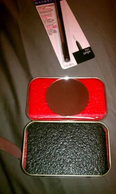 A continuación utilicé pegamento caliente para fijar las dos piezas en su lugar. Corté algunos trocitos de espuma negra para actuar como soportes para el espejo por lo que sería cerca de la misma altura que la espuma.