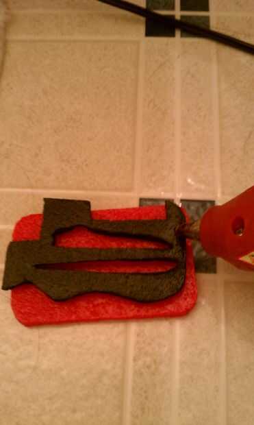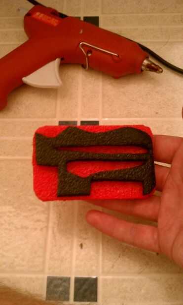 Fije a la layer(Red) inferior, aplicar una pequeña cantidad de pegamento a la parte posterior de la corte foam(Black)