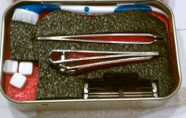 necesitaba pensar algo único para hacer uso de una lata altoids. Kits de supervivencia son grandes no hacerme mal, pero qué tal esas noches te "dormido en casa de otra persona". Una lata altoids de bolsillo con pasta de dientes, un cepillo de di