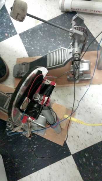 Los pedales de retroceso también fueron difíciles, porque quería utilizar la capacidad dual del disparador de la entrada-salida del gatillo, como tuve con los pads y los platillos. Quería tener dos pedales a distancia enviando notas separadas sobre un solo cable. Fue la solución se establecieron en casa el gato TRS en el pedal derecho y conectar el el pie izquierdo piezoeléctrico del pedal con extraíbles longitudes de cable con pinzas cocodrilo y junta tórica conduce. Terminó trabajando bastante bien, pero el soporte del batidor construí no es tan fuerte como podría ser y probablemente tendrá que cambiar eventualmente. Utiliza al azar encontraron pedazos de madera y metal y creo que aún he encontrado el diseño óptimo. Por lo tanto dejaré que el lector para probar su propio diseño, utilizando los principios que he esbozado. Para el pedal 'alto-sombrero', probé varios tipos que ya tenía en mi colección: un pedal de expresión de Line6, pedal que uso como interruptor del lazador cuando toco clases de baile y un par de pedales Rock Band de XBox que encontré en la calle de sostenido de un piano eléctrico. Cada uno tiene su propio MIDI mensajes de comportamiento cuando se envían a través de la entrada-salida de gatillo. Me gusta que el pedal de expresión envía control de mensajes de cambio (CC 0-127), parecidos a una rueda mod. Todavía estoy experimentando con casos de uso diferentes en el entorno del software Ableton Live.