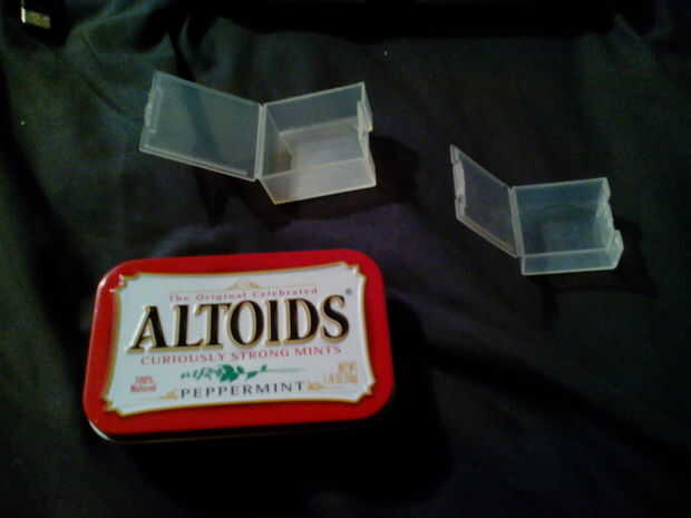 Si tu contenedor grande tiene compartimentos, no dude en saltar este paso. de lo contrario, encontrar algunos recipientes más pequeños para poner los distintos componentes. Altoids tiempo trabajo grande, pero nada va a hacer.