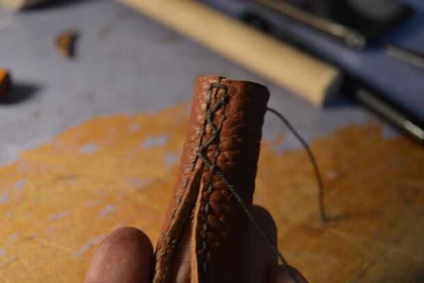 2. Luego perforar los agujeros en los lados de la pieza y comenzó a coser juntos.
