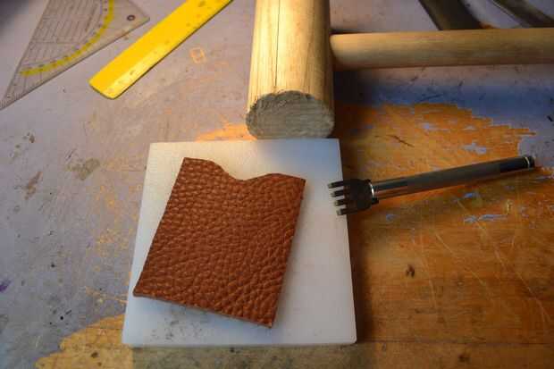 1. Primero corté una pieza de cuero suave apropiado tamaño y cortar una pequeña curva en la parte superior de la pieza.
