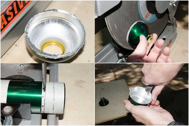 Ahora estamos listos para hacer los dos cortes. Aunque hay varias maneras de hacer los cortes, prefiero una sierra de corte. (Nota: Si vas a usar una sierra para metales, entonces usted tendrá que utilizar una técnica de "puntuación" – Buscar en YouTube videos sobre cómo usar una sierra para hacer un estufa del alcohol de Bud Light.)
