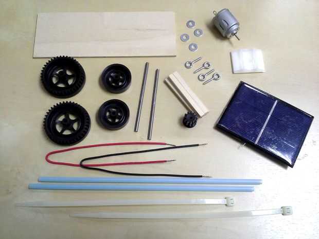 Tenga en cuenta que hay varias maneras de hacer un Kit de coche Solar y así hay materiales (de nuestro Solar Kit de coche) que no sea necesarios para esta configuración particular - como los tornillos de ojo para los ejes.