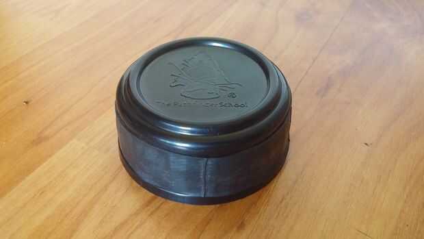 En primer lugar, he añadido una banda"ranger" (también conocido como una pieza de corte encima del tubo de la bicicleta) alrededor de la tapa. No sólo esto da mejor agarre en la tapa mojada, pero se utiliza en conjunción con el cuadro siguiente, que es presionado un pañuelo de algodón sobre la abertura de la botella. Esto actúa como un pre filtro para evitar suciedad y tal fuera al llenar la botella. Un pañuelo tiene un montón de otros usos, que no conseguiré en por el momento, ya que es un enteramente separado ' ible a sí mismo, que estoy seguro que otros ya han cubierto. En la foto tengo un pañuelo rojo y negro alrededor de la botella sólo con fines de demostración. Realmente guardo el pañuelo amarillo con este kit especial... que conduce a la siguiente foto.