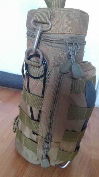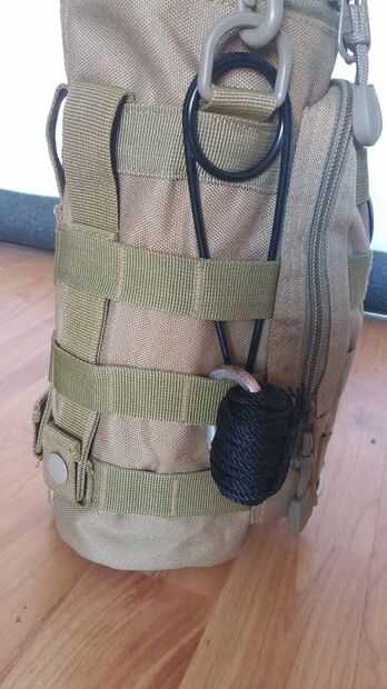 Yo podía lanzarlas en la bolsa frontal con todas las cosas, pero que muy concurrido. Así que rosca el anillo en D de la bolsa para correas de los hombros a través de los soportes de suspensión y luego les pasan por la cinta de MOLLE. De la manera y ahora imposible perderlos debido al anillo en D.