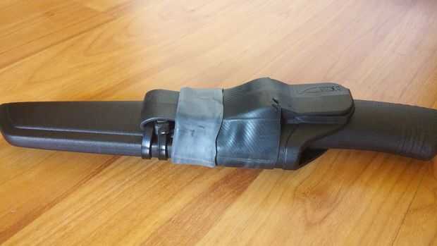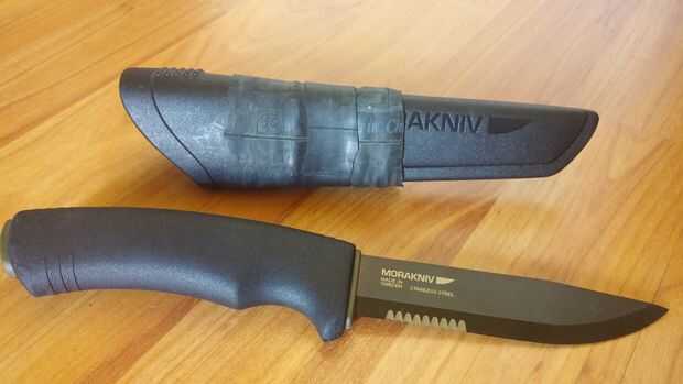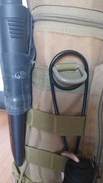 Quería tener un cuchillo decente en este kit. Así que uno de mis dos cuchillos Mora Bushcraft negro añadido a la parte exterior. Éste es el acero inoxidable y dentadas. Esto es fantástico cuchillo. Maquinilla de afeitar aguda y no aherrumbrará. Mi otros Mora es canto liso y acero al carbono, en caso de que fueras curioso. Tenía que averiguar de una manera fácil de fijar la cuchilla, ya que las vainas de Mora llano son bastante adicto y no tienen opción de accesorio de Molle. Sí, sé que tienen un complemento para las vainas, pero eso es no lo que tienen, o quieren. Así que hice mi propio. Había volteado hacia abajo la presilla y funcionó un ziptie negro a través del lazo dos veces, como se aprecia en el cuadro 2. Este bucle ahora no moverá ningún tipo. Luego agregó una banda de ranger muy grueso (una vez más, un corte encima de llanta de bicicleta) y había roscado 1 del correaje MOLLE a través de esta banda. Se sienta de alta en la bolsa principal, y es fácil establecer si es necesario. Ingenio en su máxima expresión :)