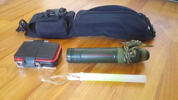 La bolsa con cremallera larga contiene un palillo del resplandor (tiempo de noche la señalización) y un filtro de sobreviviente. Se trata de un filtro de agua 3 etapas. Esto es lo poco baggie de pre filtros en la bolsa delantera para, que filtran las partículas más grandes como suciedad. Este filtro puede filtrar mejor que un LifeStraw (de micras.05 vs LifeStraw.2), y también incluye un elemento de filtro de carbono para deshacerse de cualquier gusto. Todas las partes son reemplazables, a diferencia de LifeStraw. También puede atornillarse en una botella de Dasani o GE Smartwater. En general, es un filtro mucho mejor. No aparece en la foto es el pequeño 16oz enrolla bolsa de agua que mi filtro de agua de Sawyer Mini vino con. Tiene la misma rosca como el filtro de la sobreviviente, así que mantener enrollada en la bolsa con cremallera también. Otra opción rápida para almacenamiento/filtración de agua a mi disposición.