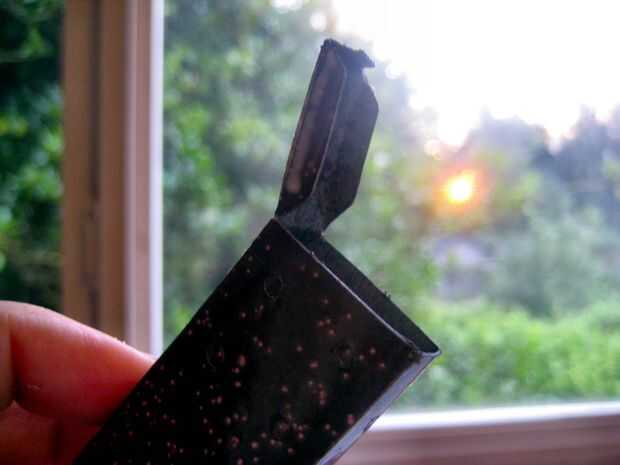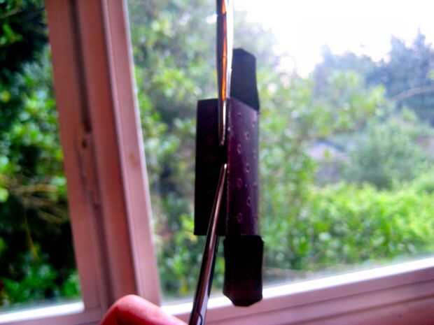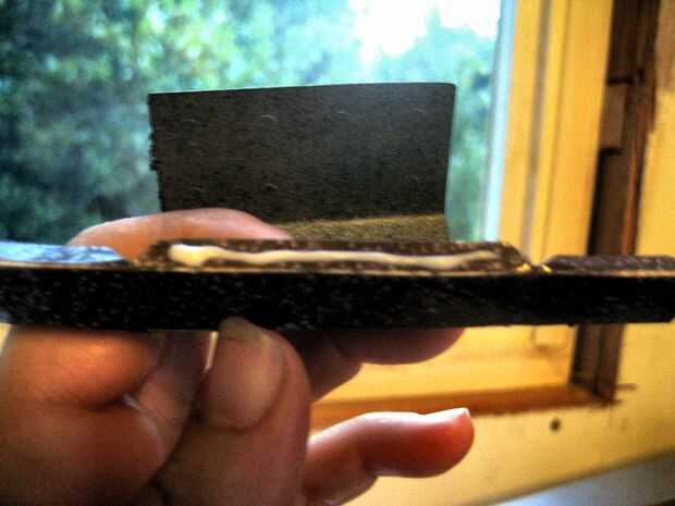 Aplicar una cantidad ligera delgada de pegamento a lo largo de la lengüeta más larga.