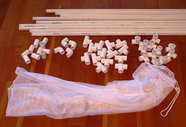 • 9 x 10 pies de largo de tubo de PVC de 1/2". Nota 1/2" PVC pipa es aproximadamente 7/8" (22 mm) de diámetro exterior. Viene en dos espesores de pared. (Ver segunda foto). Prefiero la versión de paredes más gruesas. Es más fuerte y menos propensos a romperse, pero es más pesado y requiere más esfuerzo de corte.