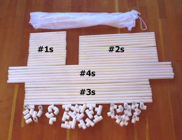Opcional: Etiqueta las piezas de tubo envolviendo una banda de cinta de vinilo coloreado alrededor de la mitad de cada uno. Usar rojo para el 4s, azul para los 3, amarillo para los 2 y el verde para el 1s. Así coinciden los diagramas en el Manual de instrucciones.