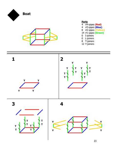Aquí os muestro unas páginas del Manual de instrucciones y dar le todo el documento en Word y en PDF forma así que usted puede imprimir. Al comienzo de cada página, hay un esquema de producto terminado, una lista de las piezas necesarias y un grado de dificultad. A continuación hay tres o cuatro diagramas paso a paso de cómo proceder. Las segemtents de la pipa están codificados por colores: rojo para el 4s #, azul para el #3s, amarillo para el 2s # y el verde para los #1s. Las letras, I, L, T y Y, indicar qué tipo de Unión va donde. He tratado de no sobre-instruir; por ejemplo, el constructor tendrá que averiguar las orientaciones adecuadas de cada articulación.