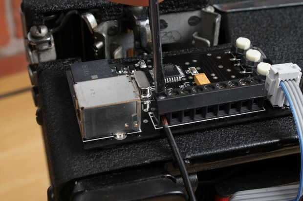 En este paso, tenemos que crear una sólida conexión eléctrica entre el panel de control y el chasis metálico de la máquina de escribir.
