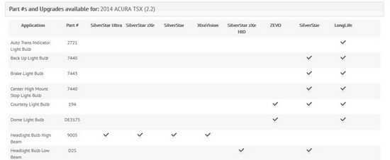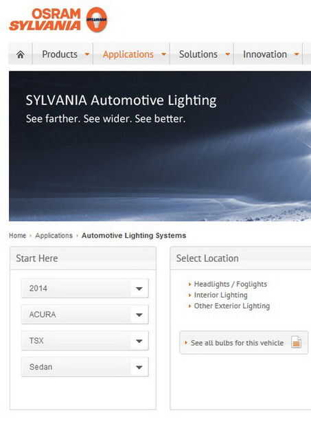 Si usted no está seguro dónde comenzar, buscador de tamaño de bulbo de Osram Sylvania es un gran lugar para conseguir sus pies mojados. Sólo tiene que conectar su información del vehículo como el año, marca y modelo para empezar. Algunos vehículos tienen clasificados como con o sin fábrica HID o sedán/coupe que tienes que elegir. Osram da la lista de tamaños de bombilla para partes específicas de su vehículo, tales como el linterna Bombilla luz de cruce, carretera y hasta la luz de bóveda.
