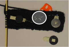 Conectar los dos granos de plata a la ficha cuadrada en el portabaterías. A pesar de pueden ser muy estrecha, asegúrese de que este nuevo segmento de hilo no toca la primera de ellas.