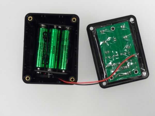PCB empuje a través de los orificios previamente perforados de la parte posterior de la tapa de la caja. LEDs y el interruptor deben sobresalir.