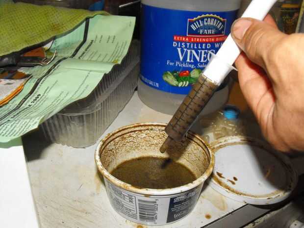 Esto es donde la jeringa viene muy bien.  Nota cuántos mililitros de material caben en una caja de lentes de contacto para que sea más fácil para llenar varios contenedores.  Cerrar las tapas enjuague firmemente, entre así como luego y por supuesto que sea claro que los casos de la jeringa y el objetivo no deben ser utilizados para propósitos de la bicicleta-defensa...