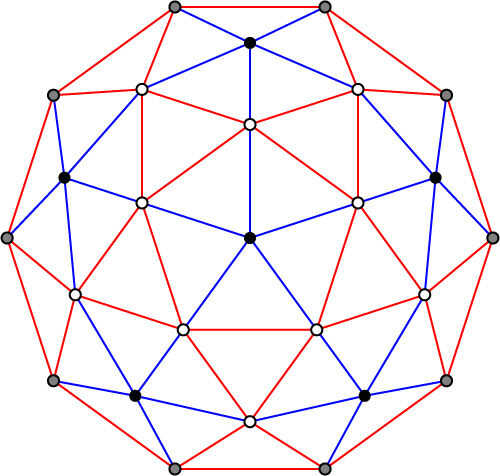Conectar la punta con 5 y Manera6 cubos y añadir 10 puntales azules, haciendo un anillo para rematar la primera fila. Ahora agregue 10 x rojo y 5 x azul struts para llenar los pernos restantes. Agregar las tapas para asegurar este nivel y ahora tienes 15 puntales x meter / colgando en el aire.