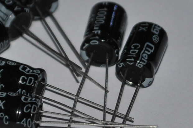 - Condensadores - un componente utilizado para almacenar energía en un campo eléctrico. Vienen como variantes electrolíticas y de cerámicas en diferentes tamaños. La unidad de capacitancia es el faradio y condensadores también vienen con el voltaje nominales.