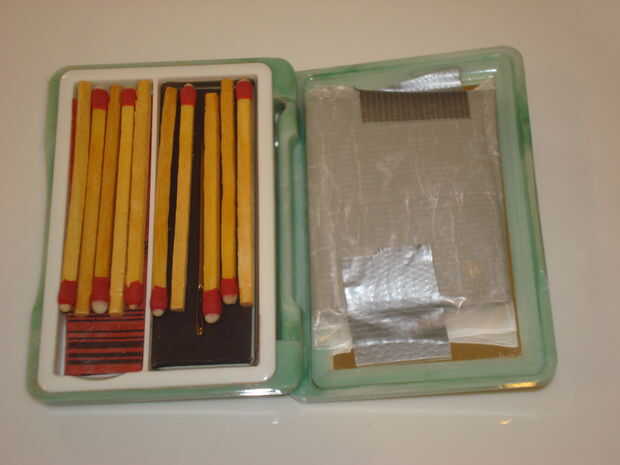 • Acerca de los partidos y la tira de un matchbook cubierta para iniciar un incendio.