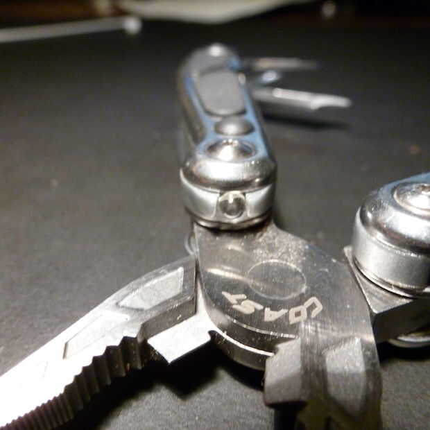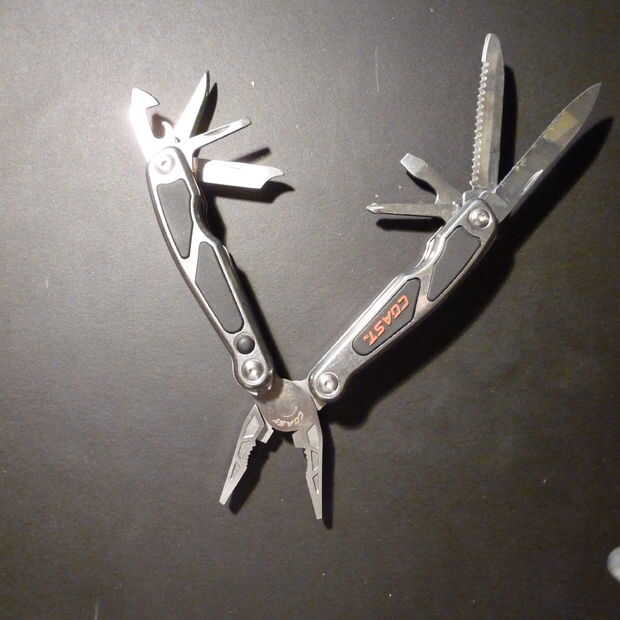 Elegir una herramienta multiusos - UGH! Tengo varios para elegir, pero que he decidido poner en me ofreció el mayor beneficio en el paquete más pequeño. Al final, el volquete para mí era la linterna en el mango. Es razonablemente brillante, y tengo un disco que cubre la batería para evitar que accidentalmente se activa y descarga de la batería. Tiene pinzas, que sentí proporcionaría utilidad más que unas tijeras (este vs Leatherman Micra) y tiene más herramientas, pero también es el doble. Pero, no tengo que poner también en una linterna, por lo que el tamaño era un comercio de. Que tengo es marca costa y creo que lo conseguí en Office Depot por aproximadamente $8.