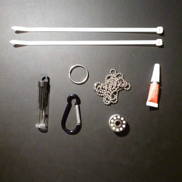 Muchos de los pequeños artículos enumerados aquí son lazos autoexplicativo, como zip. Junto a la cinta adhesiva y cinta de aluminio, probablemente el mejor todo alrededor de fix-it clase de artículo. Mismo con bandas de goma. El jumbo de tamaño uno puede contener un montón de cosas, o haz envuelto como un torniquete. Cinta combinada con ataduras de cremallera podría parchear una manguera rota en su coche para que usted consiga del lado de la carretera y a una estación de servicio.