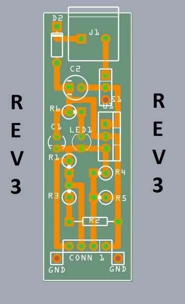 Como se mencionó anteriormente este es el diseño de Rev 2 y futuras revisiones se encuentran en las obras. Yo puedo explorar un par más opciones de diseño antes de pasar a algunas de las otras ideas que tengo en mente para futuras revisiones. He incluido revisión 3 de la disposición del PWB abajo. Pone la fuente de alimentación dentro de las dimensiones típicas de una unidad USB. El diseño del tablero es de 19 mm X 56 mm.