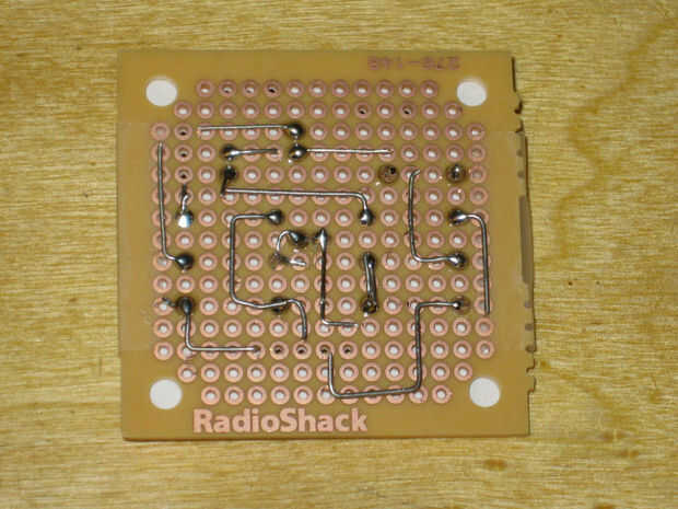 Como antes de doblar el plomo hacia fuera un poco en la dirección tienen que ir. Voltee la placa y soldar los cables en su lugar. Después contornee los cables y ajuste según sea necesario.
