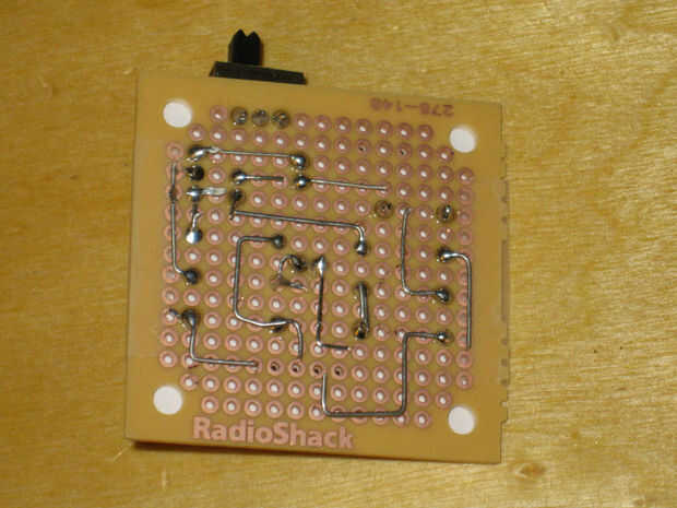 Ahora vamos a colocar el regulador de voltaje y switch en lugar. Revise las imágenes de referencia y asegúrese de que colocar el regulador de tensión en la orientación correcta. Usted será capaz de doblar un poco los cables del regulador pero no lo suficiente para usarlos como un rastro. Solo doblarlas que permanece en su lugar. Los cables del interruptor se extendió un poco más amplio luego luego los agujeros en la placa. Así que necesitarás doblarlas en muy ligeramente para conseguir que se ajuste. Como el regulador de los cables del interruptor no son lo suficientemente largos para usar como huellas y no puede doblar sobre todo para ayudar a mantener el interruptor en su lugar. Es probable que la fricción de los cables en los agujeros tendrá para usted.