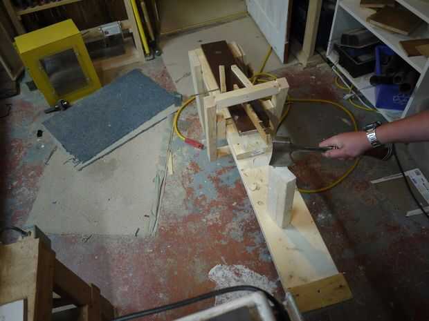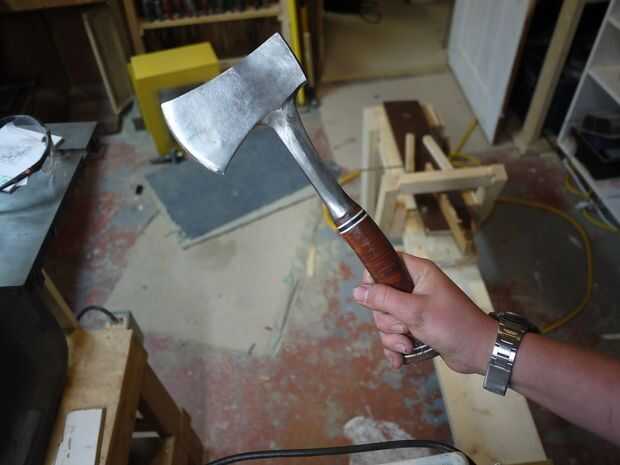 Un hacha o destral son grandes herramientas para eliminación de grandes cantidades de material o acercarse a la forma áspera de un pedazo. para este kit de herramienta un hacha pequeño funciona mejor. siempre ten el swing a través de si se va a perder así soporte al lado. pique en las rocas o cerca de salientes de metal (como los pernos en una mesa de picnic) para evitar daños al disco.