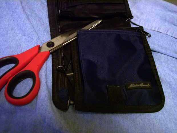Algunos cirugía juiciosa en la cartera creó un exactamente-del-derecho-tamaño de bolsillo para los dos botes caber dentro, además de espacio adicional para llaves y otras cosas. Destaza el borde con un encendedor para evitar el desgaste al mínimo.
