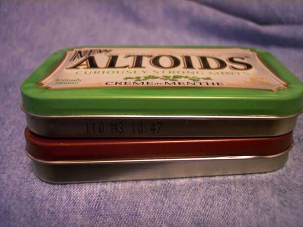 Llevó a estas cajas con bandas de goma juntos en mi maleta para una semana. Realmente quería que un poco más espacio que una caja de Altoids había dentro. Mientras que las compras en mi favorito "tesoro tienda" encontré el complemento perfecto a mi caja de herramientas--una cosa del hombre-monedero de Eddie Bauer.