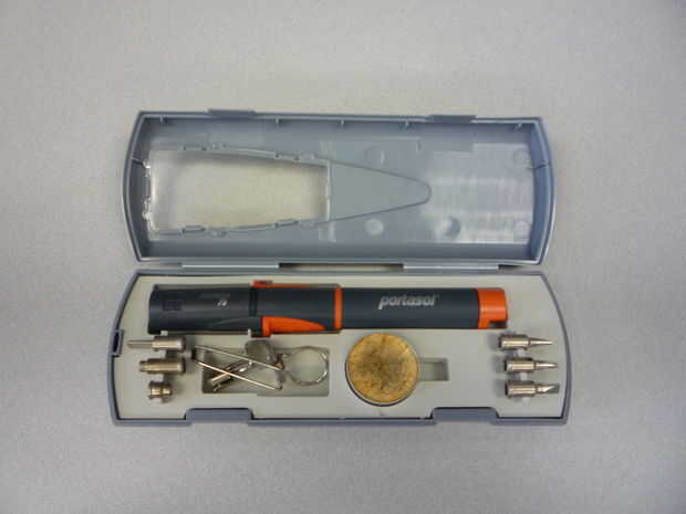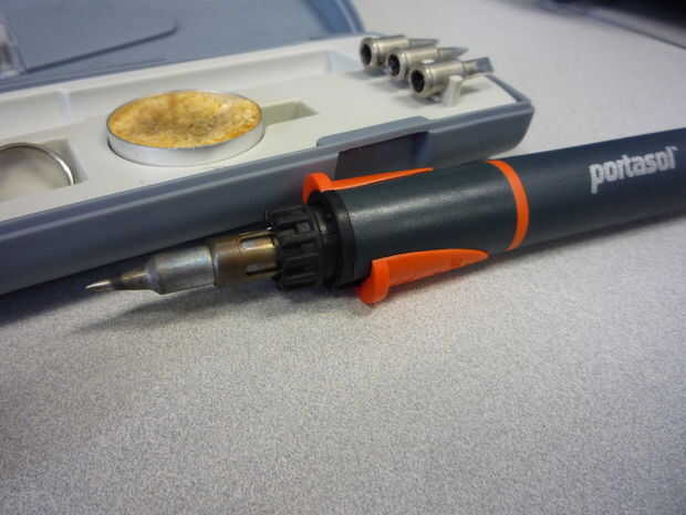 Utilizar un modelo de Portasol 125, es una muy agradable poco butano soldar configurar. Viene con 4 puntas diferentes, un cuchillo caliente, llama punta, punta de aire caliente y calor retráctil cubierta. así como un soporte pequeño y una esponja.
