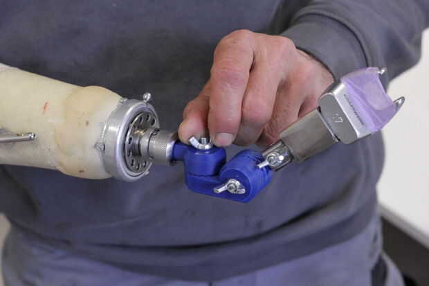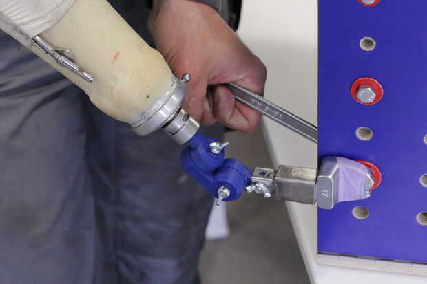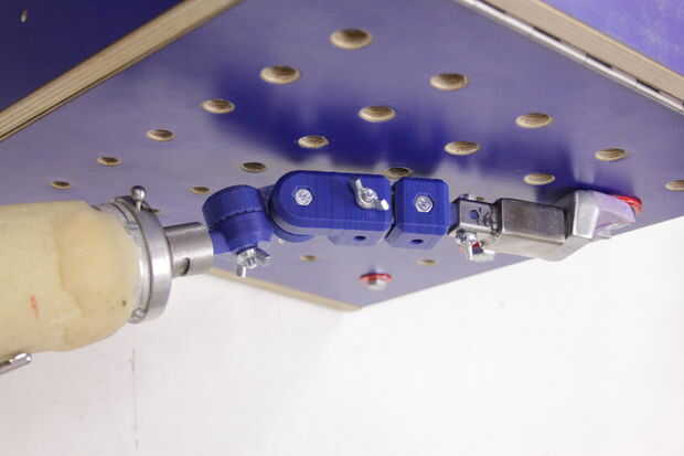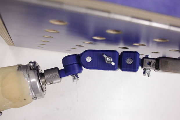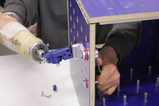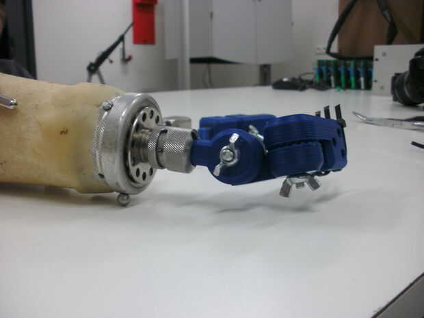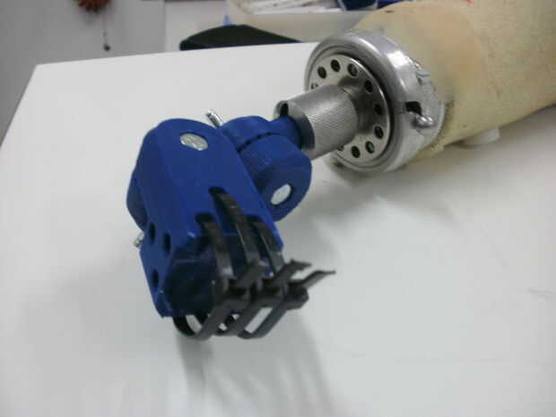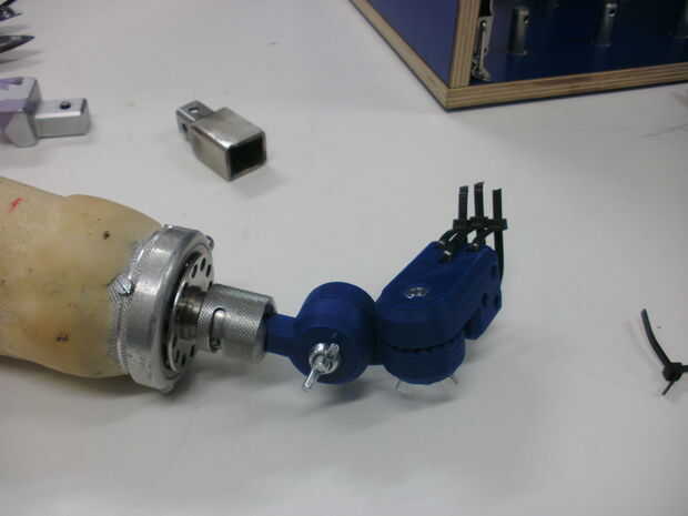 Como se muestra en las fotos, este kit de herramientas puede ser unido a un trabajo-brazo prostético para permitir que las personas con una amputación de brazo aacople herramientas 'baja tecnología' a su prótesis. Su objetivo es darle la capacidad de estas personas a extensiones de brazo prostético de prototipo y prueba y Buscar las dimensiones correctas y posicionamiento. Todos los componentes de las herramientas fueron diseñadas para 3D, corte por láser o estándar disponibles. De esta manera, se logra una herramienta de apoyo a la medida y por encargo.