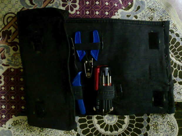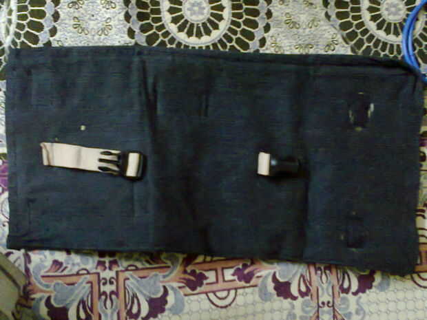 Ahora coser el extremo abierto de la tela como se muestra arriba, use cinta Velcro en los extremos cercanos para mantener intacta la bolsa de herramientas.
