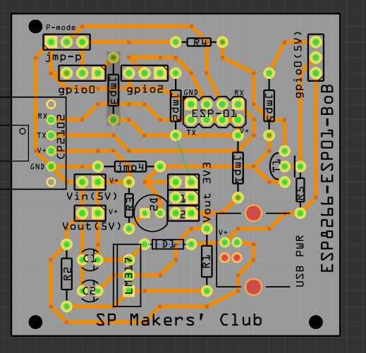 Los principios de diseño de IoT Kit de la máquina para ESP8266 (ESP-01) se enumeran en el siguiente. Kit de IoT del hacedor es un tablero del programador con el uso de CP2102 como el USB serial y también una placa de prototipos. Para cambiar entre el modo de programación y el modo de creación de prototipos se realiza con la ayuda de un puente. El PCB está diseñado como una sola capa PCB a propósito, bajar la barrera de entrada para que pueda ser reproducido fácilmente por cualquier máquina de fresado de PCB disponible en talleres, FabLabs o de espacios. Se coveniently rompe GPIO0 y GPIO2 para ESP8266 ESP-01. GPIO2 se utiliza para el dispositivo de entrada de 3c3, y GPIO0 se utiliza para el dispositivo de salida de 3v3. Por diseño, una salida de 5V está disponible en GPIO0, y esto se hace con transistor NPN adicional. Asumiendo que el prototipo y el código fuente se comporta de acuerdo a las especificaciones, entonces el ESP8266 ESP-01 puede dejarse como está en IoT Kit de la fábrica para ser desplegados sobre el terreno y recoger datos de interés. Fuente de alimentación a los prototipos construidos con ESP8266 ha sido un dolor de cabeza constante, especialmente desplegado al aire libre. IoT Kit de este fabricante deportes 3 posibles entradas para fuente de alimentación. primero los 5V desde el CP2102. este modo sólo se recomienda para la programación de la ESP8266, pero no para su implementación debido a la corriente requerida por ESP8266. A continuación, un pin de 2pin molex para la alimentación del adaptador de CC. El voltaje del adaptador DC varía de 5v a 12v, siempre y cuando sea dentro de las especificaciones del regulador de voltaje LM317. Por último, fuente de alimentación vía puerto USB B, esto abre una selección mucho más amplia que van desde los bancos de potencia hasta cargador de teléfono móvil. Un diodo es añadido al puerto USB B, debido a una experiencia de humo mágico de un cables USB mal alimentando a mi precioso. no hay méritos para adivinar donde lo cables orginated de. Aprender de la sabiduría colectiva de los amantes del ESP8266, la peculiaridad de ESP8266 GPIO0 de torneado alta durante el arranque es dirigida por el transistor PNP.