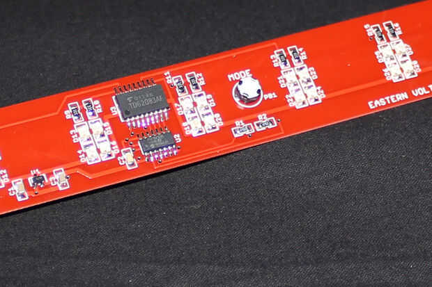 El tablero del PWB ha sido diseñado en un 0,031" FR4 substrato que es extremadamente flexible. Esto le permite ser fácilmente doblado y formado alrededor de superficies curvas, tales como una bicicleta casco pieza automóvil ligero o curvado.
