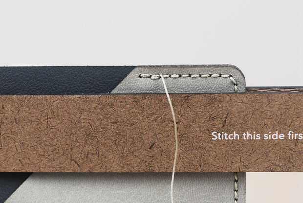 Después de completar la primera línea de la costura principal, quitar el cuero de potro costura, vuelva a insertar un perno de costura en el hoyo final y volver a colocar el cuero en el potro de costura horizontal.