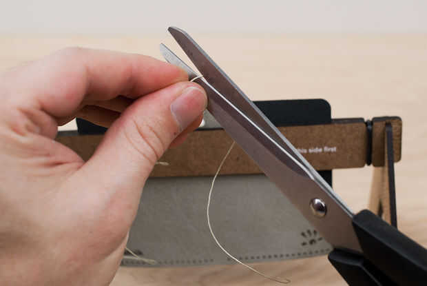 El kit viene con una 26" pedazo de hilo y usted necesita cortar aproximadamente ocho pulgadas para la costura primera. Afortunadamente, el potro de costura es sólo de ese tiempo. Tan medir un trozo de hilo como las costuras de pony y corte.