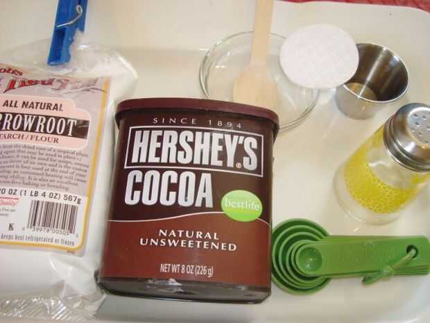 Cucharas de mediciónComience por medir 1 cucharadita de cacao en polvo y ponlo en un plato. Probar el polvo en la piel de color. Si es demasiado oscuro, añadir 1/8 cucharadita de harina de raíz de flecha para el cacao y mezclar bien. Prueba en tu piel otra vez. Si todavía está demasiado oscuro probar con otro 1/8 cucharadita de la harina de raíz de la flecha. Prueba otra vez. Repita este método hasta que estés contento. Tome nota de su relación para uso futuro y un lote más grande de la mezcla y mezcle bien o (mezcla en el molinillo de café para grandes resultados).