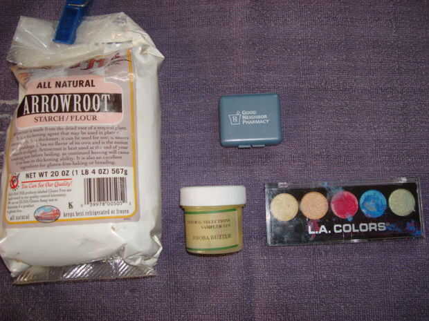 Si quieres menos brillo aplicar una pequeña cantidad de harina de raíz de flecha sobre el área coloreado y a la fórmula.