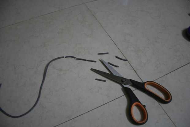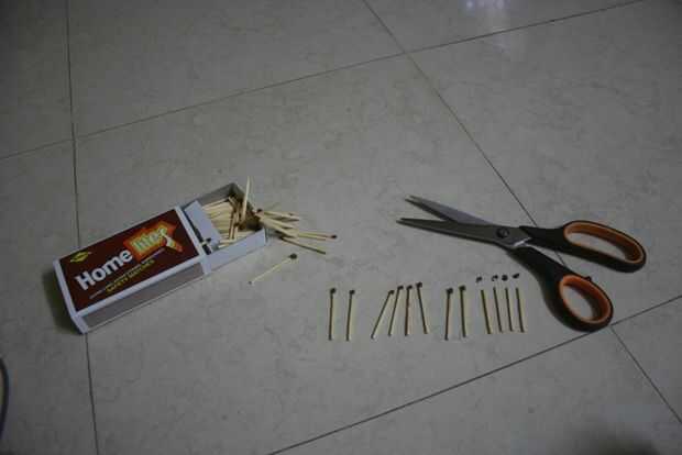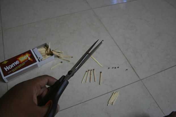 Corte de la punta de la iluminación de los palitos de fósforo.