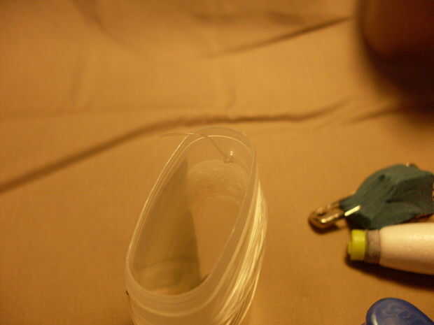 Un nudo en el extremo de la línea y haga un orificio pequeño en el envase.