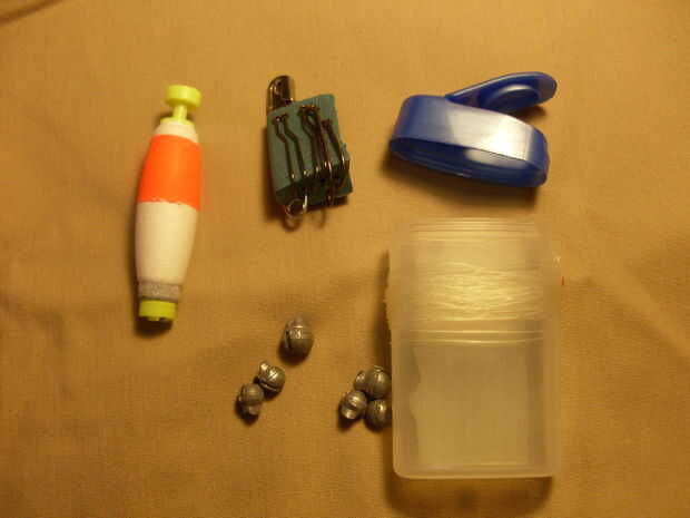 Una vez más, lo que va dentro es realmente depende de usted. Logró encontrar a un corcho lo suficientemente pequeño como para mi equipo y pegado anzuelos en un poquito de espuma. Entonces agregué unos plomos para facilitar la fundición.