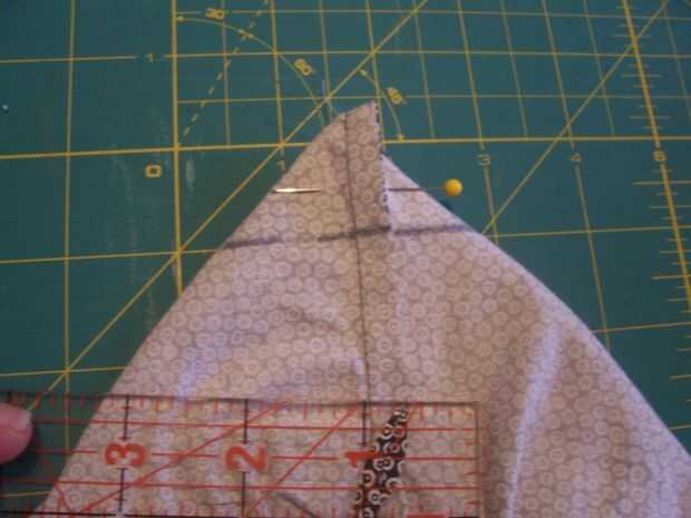 Mientras que la bolsa es todavía adentro hacia fuera, doblar cada una de las cuatro esquinas para que la costura lateral es poner en el centro inferior (ver fotos--esto es difícil de describir).