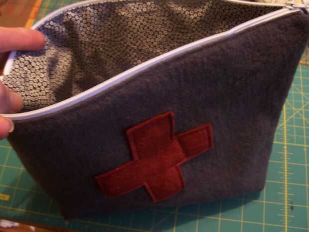 Entonces, pin y puntada cerraron la bodega en el revestimiento y el revestimiento en el exterior. Sorprendentemente, debería verse como una bolsa.